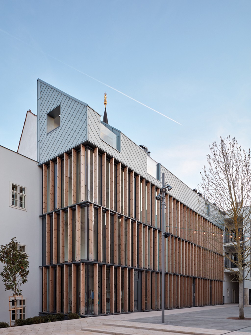 Polyfunkčný objekt je navrhnutý ako rozšírenie objektu na Štefánikovej 3, postavený k slepej stene susedného objektu s cieľom aktivovať novovzniknuté nádvorie. Špecifikom je 4,5 metra široký pôdorys a prevažne jednostranná orientácia smerom do nádvoria. Výškovo sa pritom drží pôvodnej časti, pričom je materiálovo horizontálne členený a vytvára tak plynulý nárast mierky od domu na Trojičnom námestí.