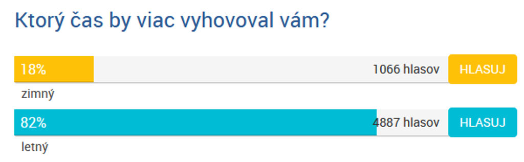Vytvorili sme aj anketu, do ktorej sa zapojilo takmer 6000 ľudí. Len 18 percent hlasujúcich sa vyjadrilo za zimný čas, zvyšných 82 percent by chcelo radšej fungovať v letnom čase.