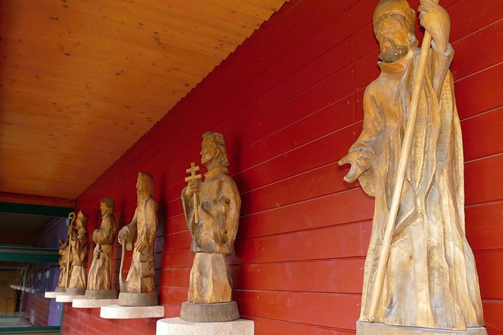 Sochy slovenských apoštolov od manželov Loviškovcov nahradili podľa starostu Starej Bystrice Jána Podmanického drevené sochy od ľudového rezbára Petra Kuníka z Tvrdošína. "Umiestnili sme ich na vonkajšej balkónovej chodbe pri východe zo strojovne orloja, kde si ich návštevníci môžu pozrieť," uviedol Podmanický.