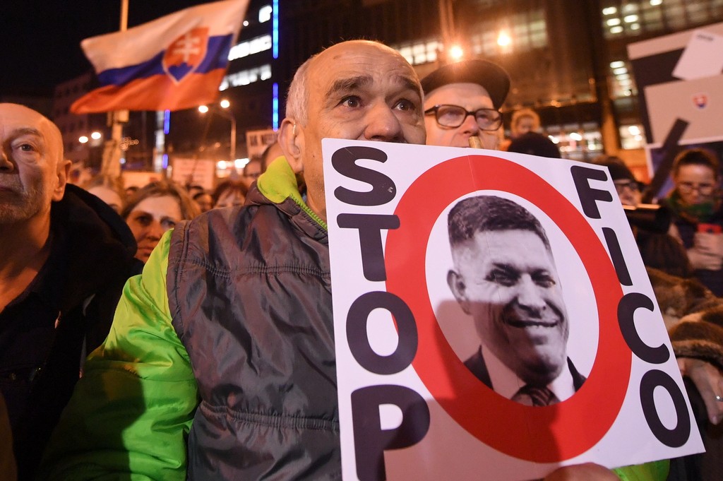 18.05 - Na pódium sa postavila Pavla Holcová, česká investigatívna novinárka, ktorá spolupracovala aj s Jánom Kuciakom. Za ňou sa združili niekoľkí slovenskí novinári.