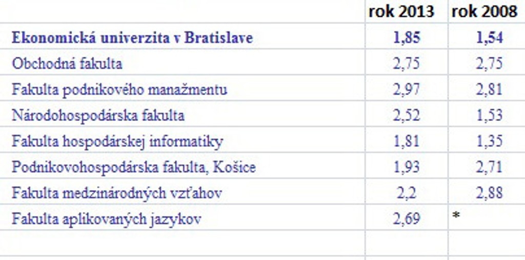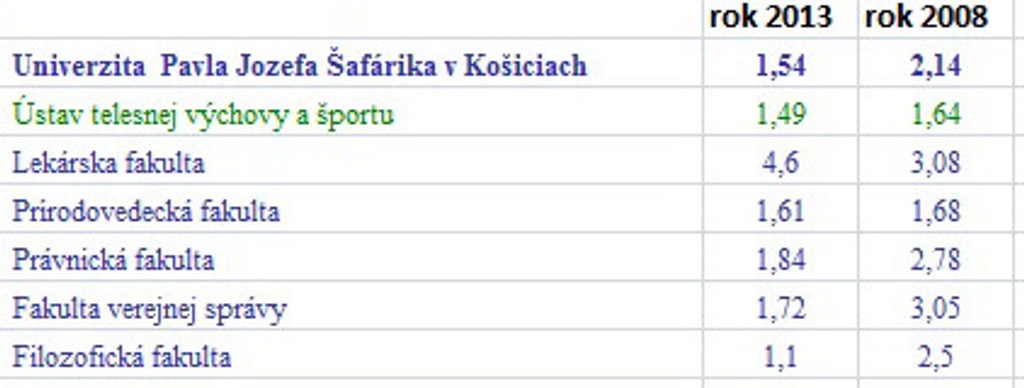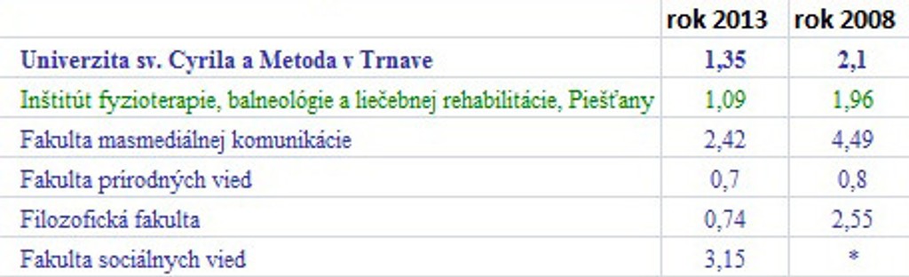 Zdroj: UIPŠ, * na fakultu neprijímali