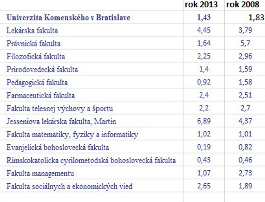 Na právnické či filozofické fakulty sa v súčasnosti ľudia dostanú jednoduchšie ako pred niekoľkými rokmi. Na jedno voľné miesto totiž pripadá menej uchádzačov.