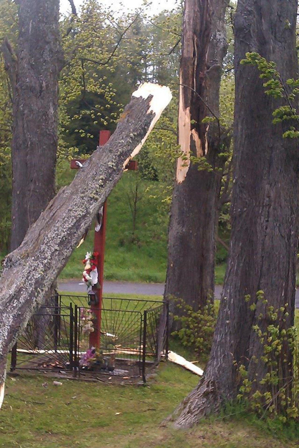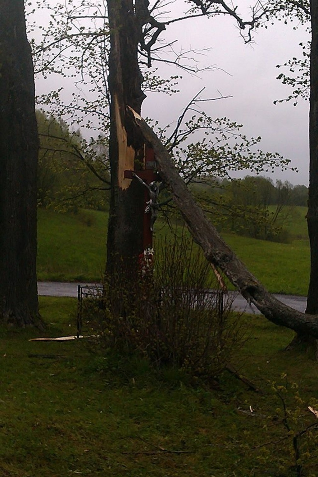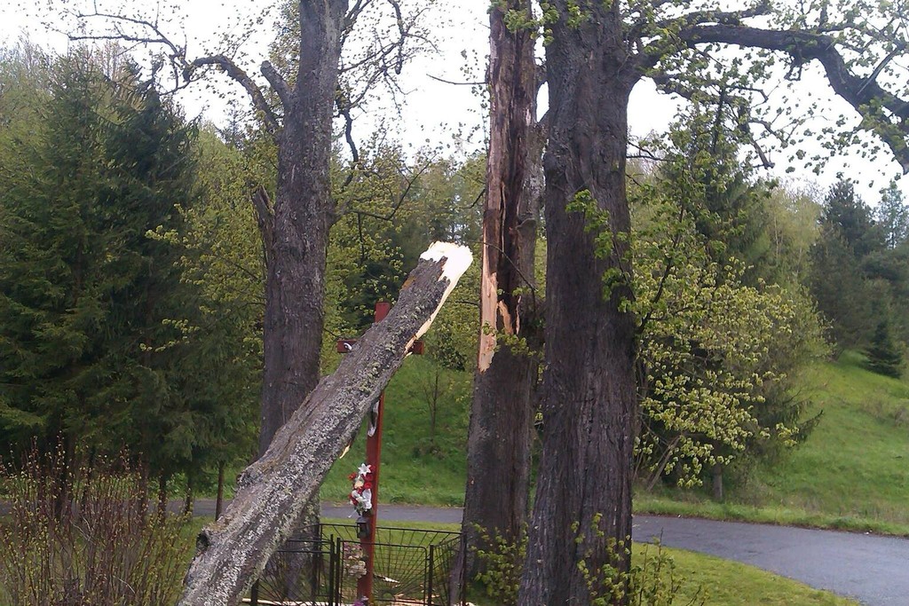 Padajúce stromy ničia autá aj domy. Drevený kríž však ostal stáť