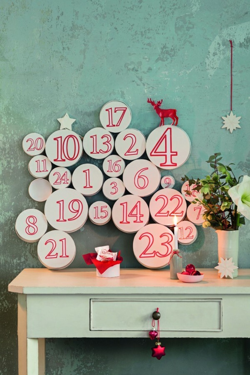 Pre inšpiráciu si môžete na internete nájsť rôzne dekoračné typy písma, aby boli číslice pekné na pohľad. Potom obrysy vystrihnite a prilepte na každú krabičku. Všetko môžete doladiť červenými a bielymi mašličkami, alebo ich po obvode krabičiek ešte dozdobiť trblietkami. Nezabudnite dovnútra schovať drobné darčeky, vrátane kokosových praliniek Raffaello.