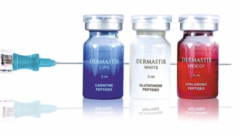 Dermastir Luxury AMPULKY NA MEZOTERAPIU - Mezoterapia je jedno z najúčinnejších protivráskových ošetrení, pri ktorom sa do pokožky aplikuje kyselina hyalurónová, vitamíny a séra, ktoré zlepšujú elasticitu pokožky, vypínajú povädnuté časti tváre, rozjasňujú pleť a spevňujú pokožku.Séra sa aplikujú pomocou vibračného valčeka Dermastir Cellular bar alebo Dermarollerom – valčekom s mikroihličkami.