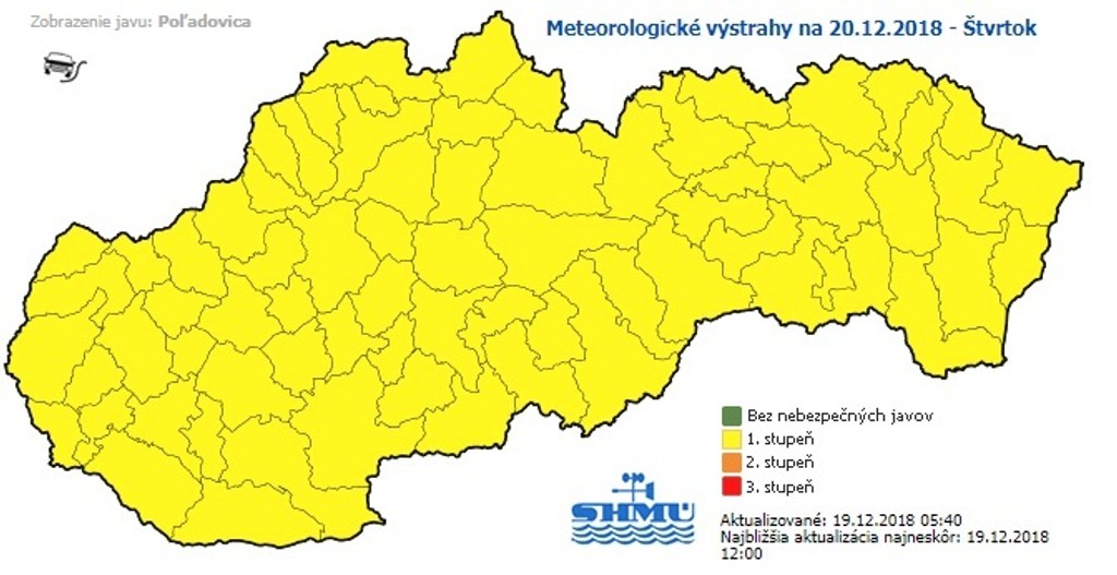 Výstraha pred poľadovicou platí takisto aj v piatok 21.12 po celý deň.
