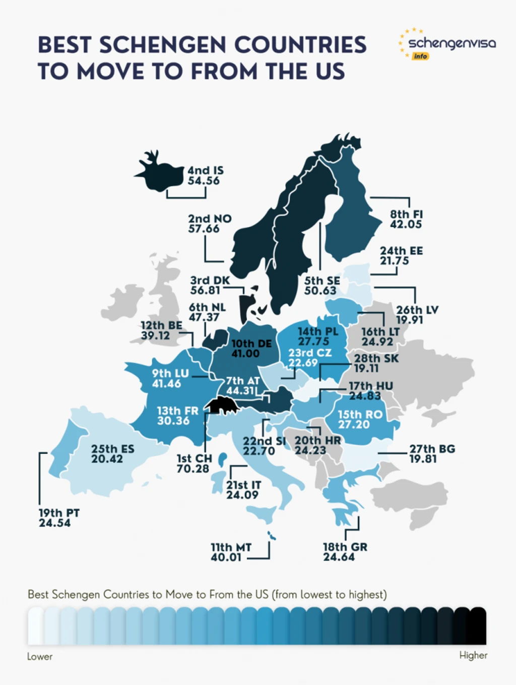 SchengenVisaInfo has ranked the best Schengen countries to move to from the US, in which Switzerland has emerged as the top destination, offering the ultimate conditions for American citizens to settle?? #schengenvisainfo #usa #unitedstates #moving #moveabroad #switzerland pic.twitter.com/y557rdmS3I