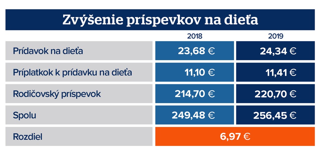 Rodičia na Slovensku si od začiatku tohto roka mierne finančne prilepšia. Od 1. januára do platnosti vstúpili opatrenia rezortu práce, ktorými sa zvyšujú viaceré dávky, i keď v niektorých prípadoch rast predstavuje len pár centov.