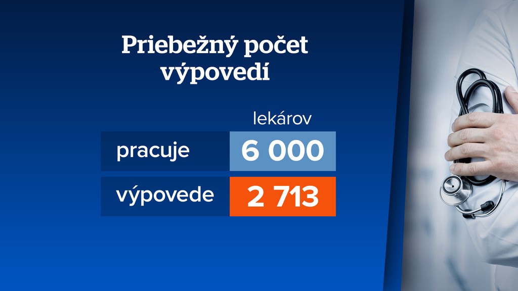 V slovenských nemocniciach aktuálne pracuje približne 6-tisíc lekárov. Výpovede podala takmer polovica z nich. Je ich viac ako 2700.