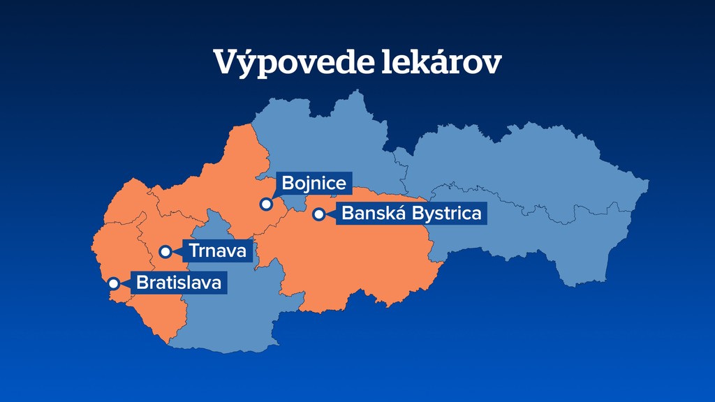 V mestách, ktoré sú vyznačené na nasledujúcej mape, lekári už podali stovky výpovedí. Okrem Bratislavy sú to ďalšie nemocnice naprieč Slovenskom.