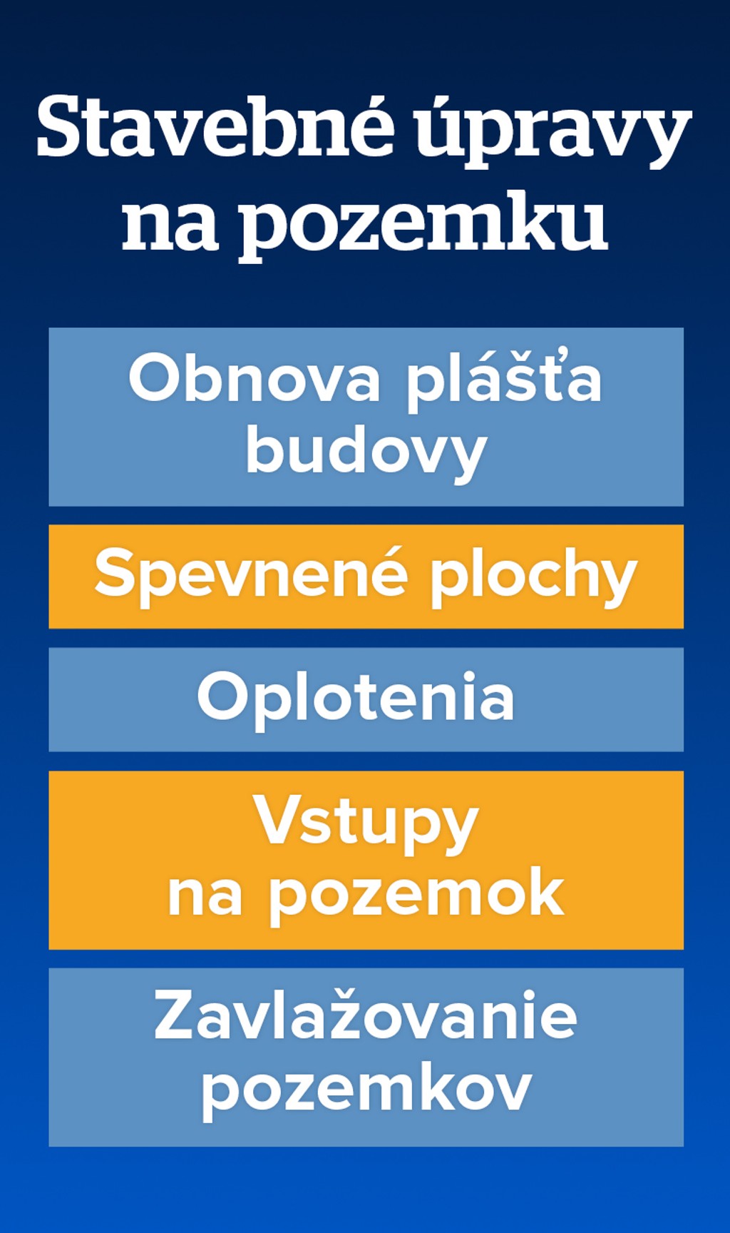 Zjednodušia sa aj stavebné úpravy, akými sú napríklad obnovy plášťov budov a menej byrokracie by malo byť aj so stavebnými úpravami na pozemkoch.