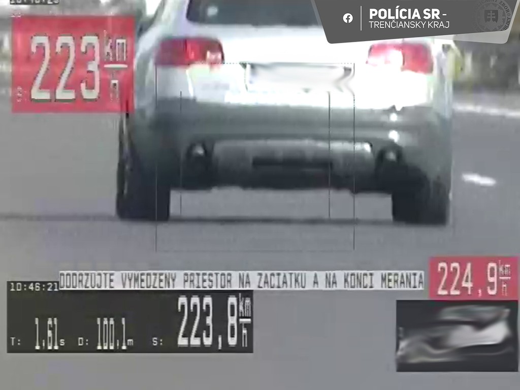 „Vodičovi osobného motorového vozidla značky Audi bola nameraná rýchlosť najskôr 161 km/h, potom 205 km/h a následne 223 km/h,“ informuje polícia na sociálnej sieti.
