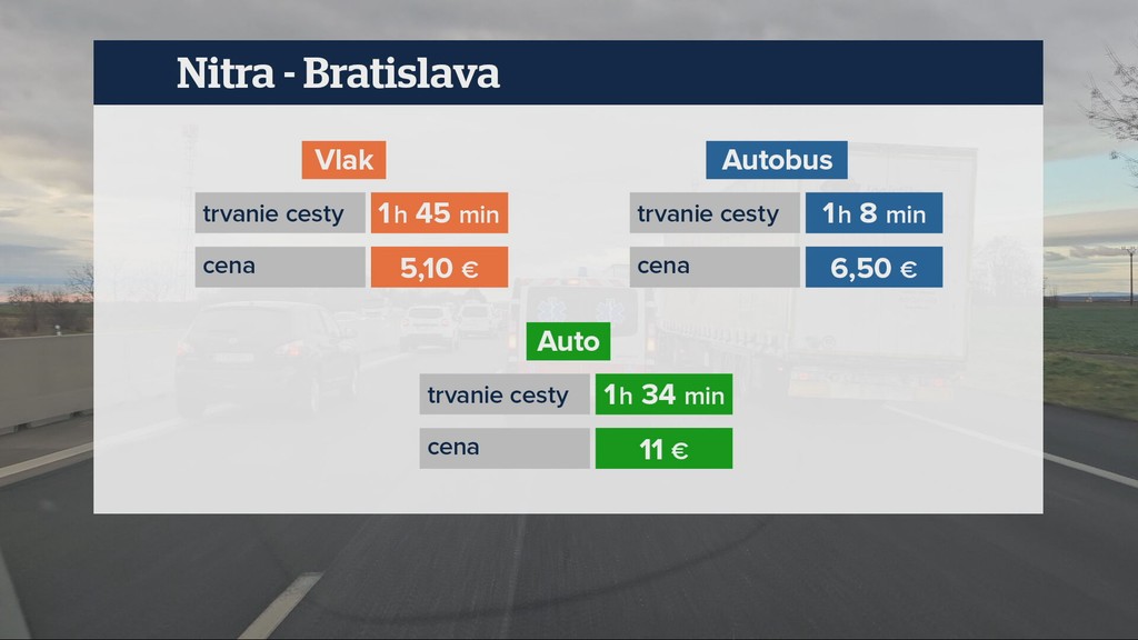 Cestu pre porovnanie absolvoval autom aj náš kameraman. Z Nitry do Bratislavy cestoval viac ako hodinu a pol, kolóna pri Senci mu však výrazne skomplikovala situáciu.