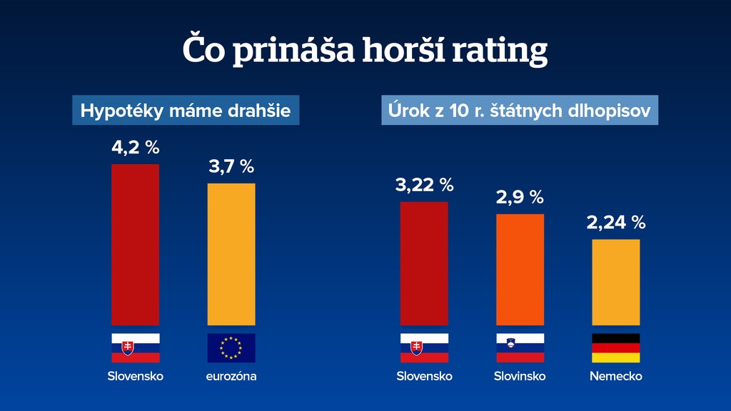 Horší rating Slovenska už vidieť na vyšších rizikových prirážkach nášho štátneho dlhu. A cítiť ho už aj v úrokoch, ktoré bežní ľudia platia bankám.