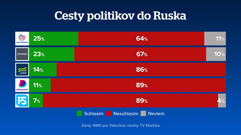 Priaznivci väčšiny opozičných strán sú výrazne proti. S cestou do Moskvy napríklad nesúhlasí až 89 percent voličov Progresívneho Slovenska (PS).