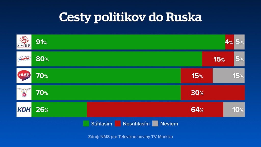 Cesty slovenských politikov do Ruskej federácie polarizujú spoločnosť. Ukázal to exkluzívny prieskum agentúry NMS pre televíziu Markíza.