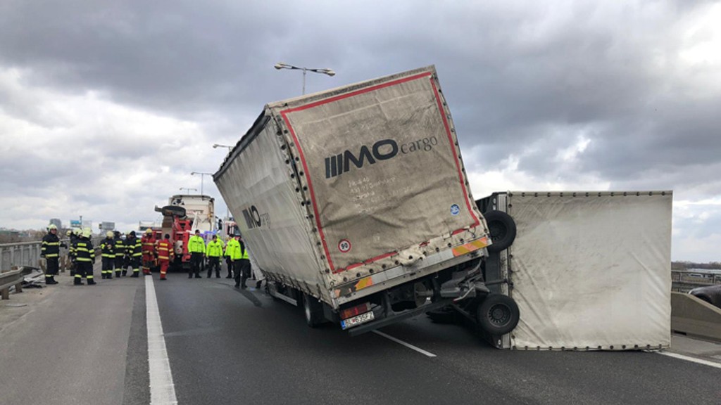 Na Prístavnom moste v Bratislave v smere do mestskej časti Petržalka sa stala dopravná nehoda. Cestu blokuje prevrátená kabína nákladného auta a tak nie je most prejazdný.