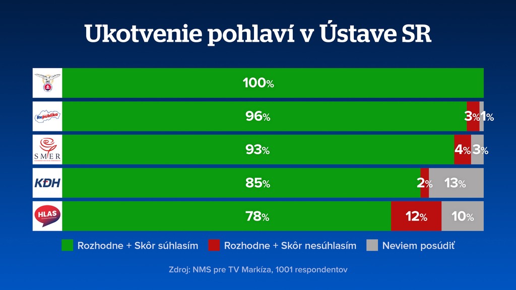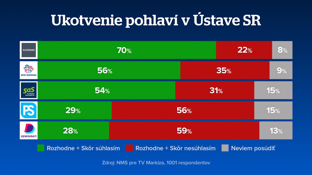 Väčšina Slovákov je za ukotvenie dvoch pohlaví priamo do ústavy. Ukázal to exkluzívny prieskum agentúry NMS pre televíziu Markíza.
