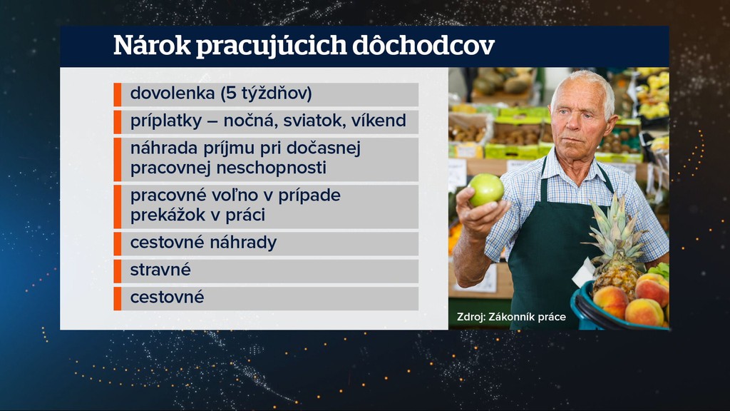 Dôchodcovia si v riadnom pracovnom pomere užívajú aj všetky zamestnanecké výhody - päť týždňov dovolenky, príspevky na stravu či rôzne príplatky.