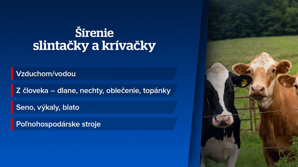 Dobrou správou je aspoň to, že slintačka a krívačka nie je pre ľudí nebezpečná. Človek ochorie len veľmi zriedkavo, ale môžeme ju na zvieratá prenášať.