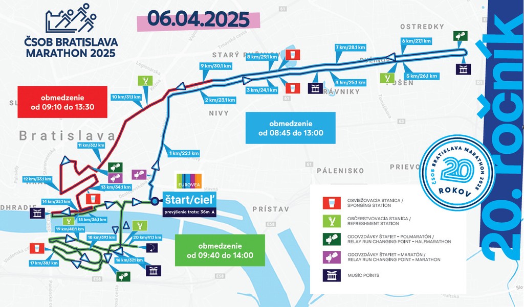 Priblížila, že v sobotu (5. 4.) od 14.00 h do 17.00 h sa dopravné obmedzenia dotknú len blízkeho okolia bratislavského nákupného centra. V nedeľu (6. 4.) od 8.30 h do 14.00 h by podľa nej vodiči mali rátať s dopravnými obmedzeniami najmä v mestských častiach Staré Mesto, Ružinov a Petržalka.