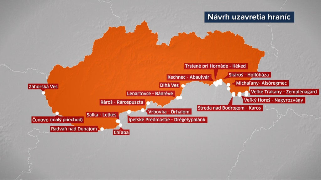 Rozhodnutie majú prijať ministri na mimoriadnom rokovaní už v pondelok (7. 4.). Televízia Markíza má k dispozícii aj návrh priechodov, ktoré by mohli v najbližších dňoch uzavrieť.