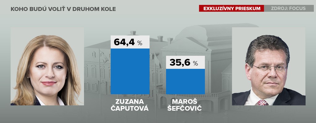 Ak by Čaputová bojovala o prezidentských post so Šefčovičom, tak by získala 64,4 percenta, Šefčoviča by volilo 35,6 percenta opýtaných.