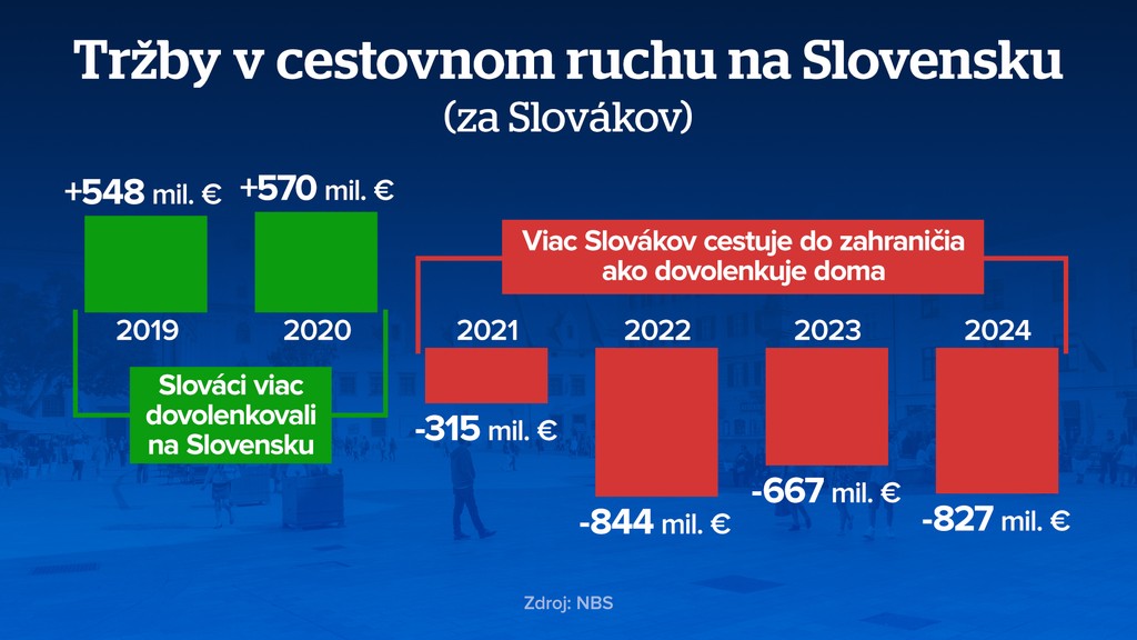 Podobne zle na tom bol aj minulý rok, keď sme za hranicami nechali o vyše 800 miliónov eur viac, než zarobil domáci cestovný ruch.