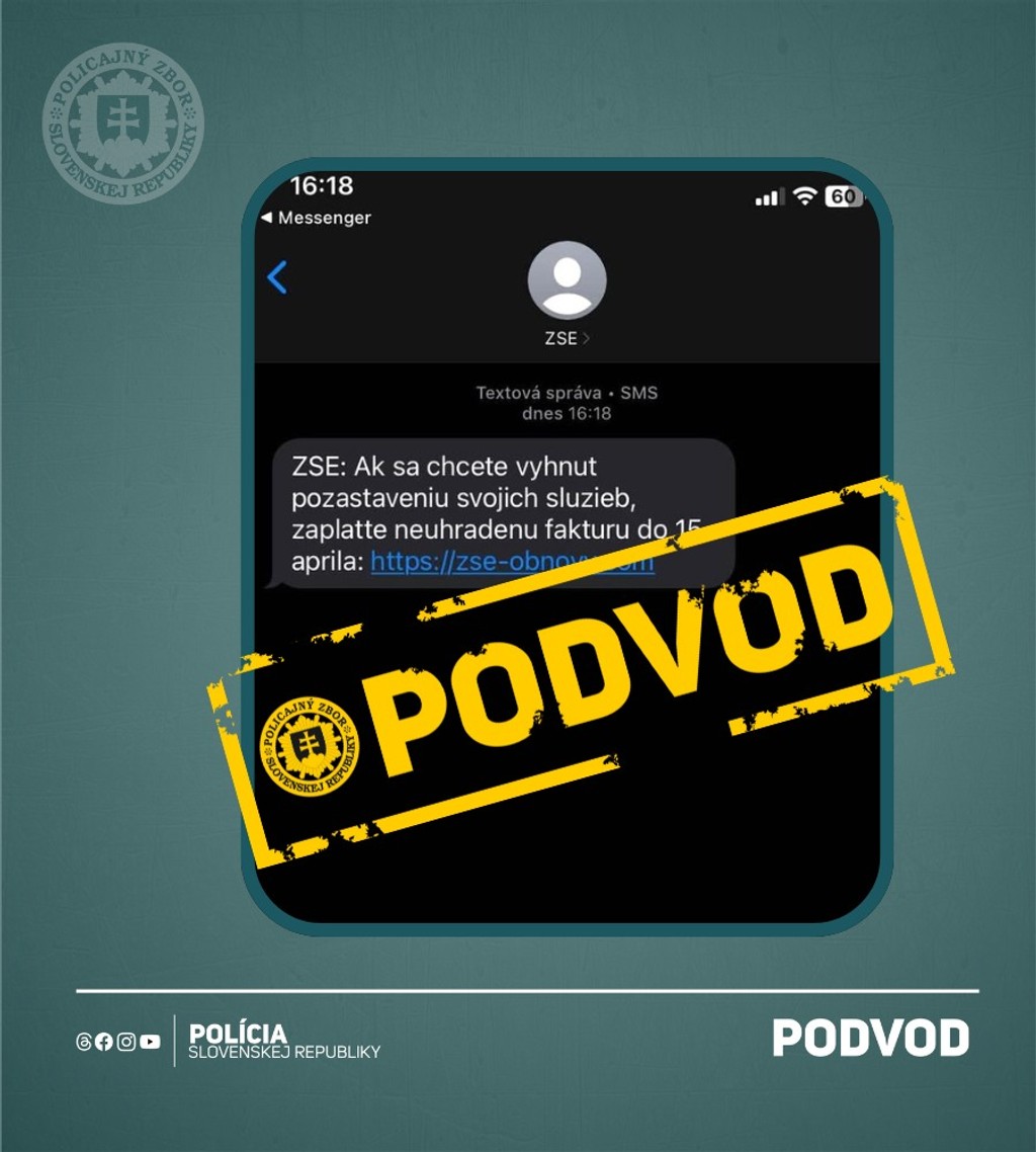 „Elektrárne takéto SMS správy neposielajú. Faktúry vám prídu buď v aplikácii alebo poštou. Formu zasielania faktúry si vždy dohodnete na začiatku zmluvy,“ uviedla polícia.