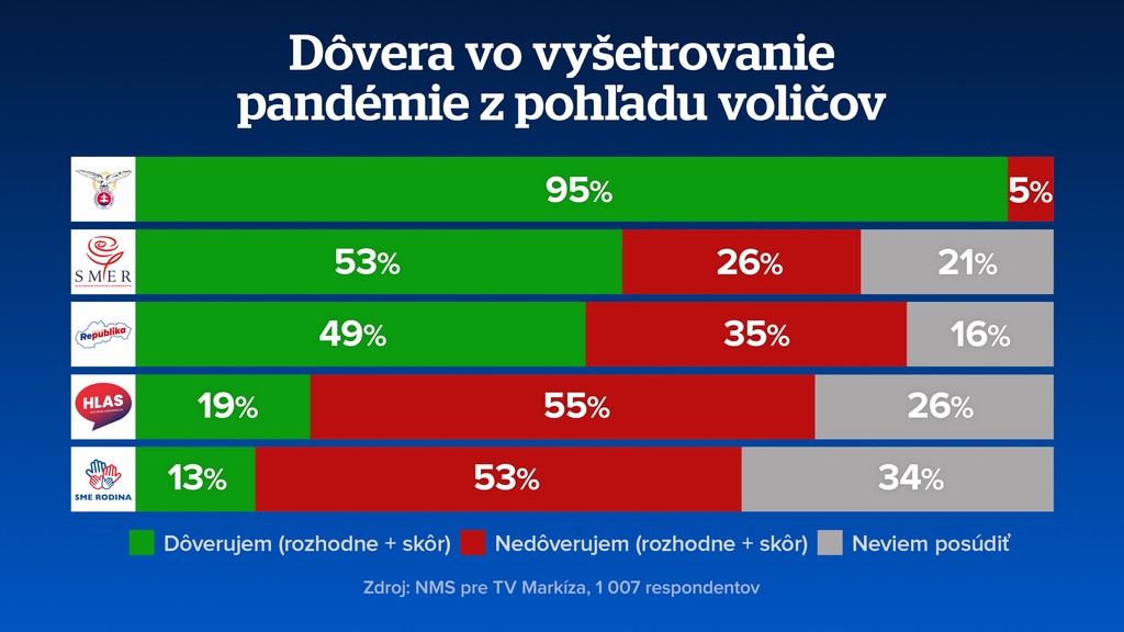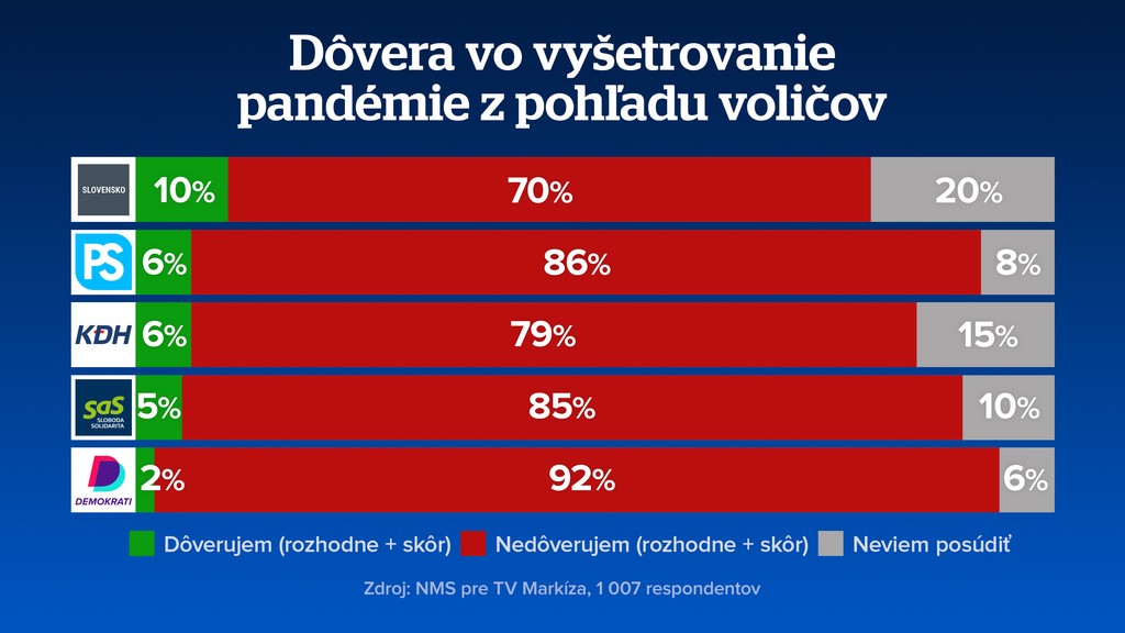 Naopak, iba sedem percent voličov opozičných parlamentných strán dôveruje samotnému vyšetrovaniu a až 82 percent voličov prácu splnomocnenca nepodporuje.