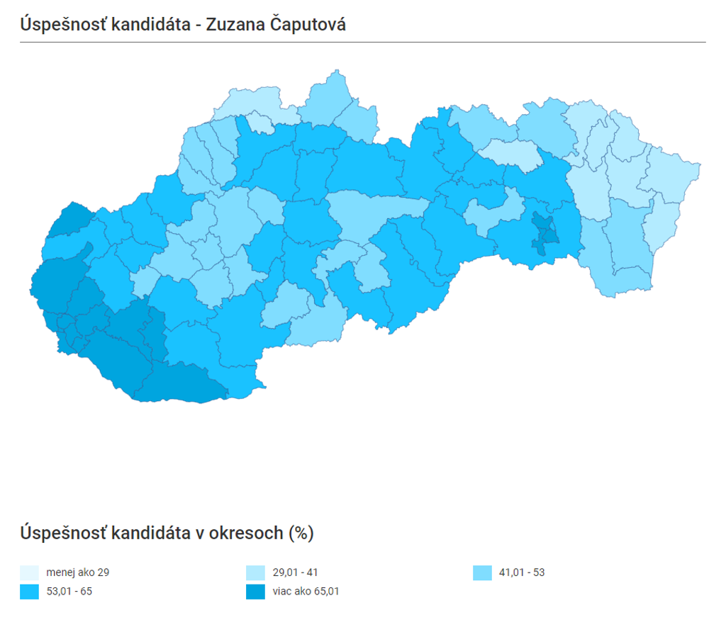 Z vyššie uvedeného vyplýva, že najslabší Čaputovej výsledok bol v okrese Snina (32,23 %) a Šefčovičov v okrese Dunajská Streda (16,05 %).