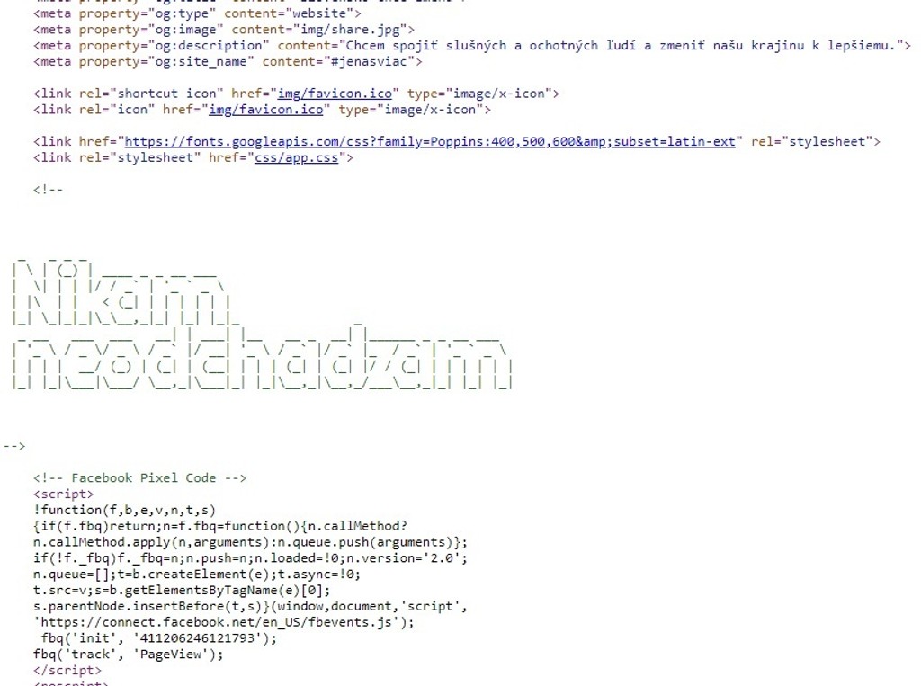 Andrej Kiska v stredu ráno oficiálne oznámil, že zakladá novú stranu. Spravil tak na Facebooku s heštegom #jenasviac. Pod týmto názvom existuje aj web stránka, na ktorej Kiska zakomponoval slová, ktoré mu Fico pri demisii pred kamerami, novinármi a fotografmi povedal. „Odkaz“ vidieť v zdrojom kóde webovej stránky.
