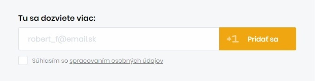 Návštevník vidí, že pri prihlasovaní sa na odoberanie newslettera stránka ponúka vzorový mail odoberateľa ako [email protected].