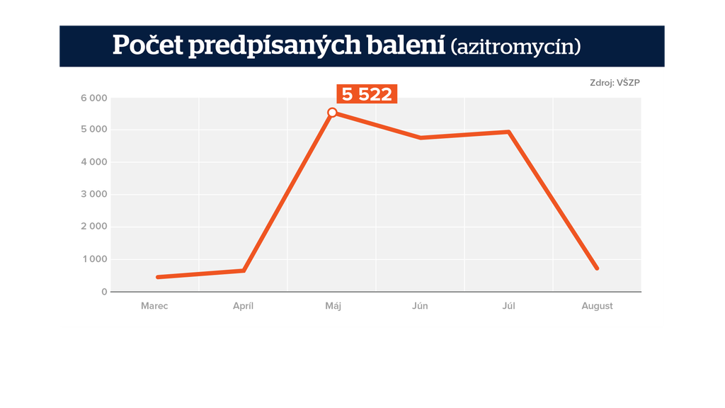 Analýza Všeobecnej zdravotnej poisťovne ukázala rapídny nárast receptov na toto trojdňové antibiotikum. Kým v marci minulého roka lekári predpísali 446 balení, v máji to už bolo vyše 5500.