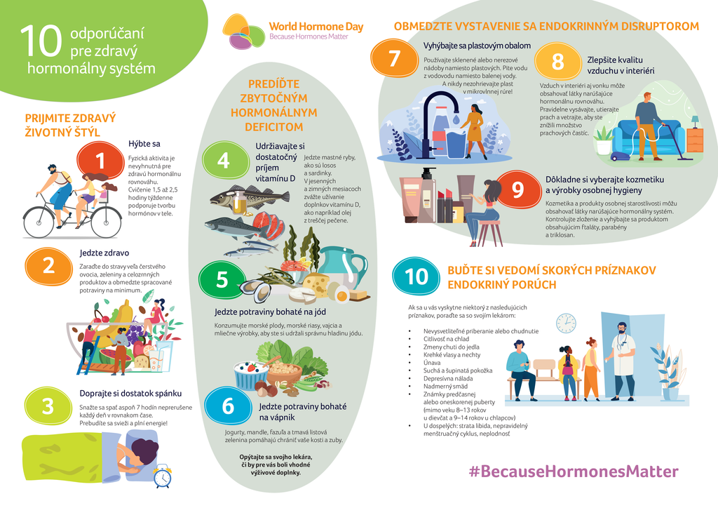 Európska endokrinologická spoločnosť preto pri príležitosti Svetového dňa hormónov vydala 10 základných odporúčaní na zachovanie dobrého hormonálneho zdravia, ktoré určite stoja za pozornosť: