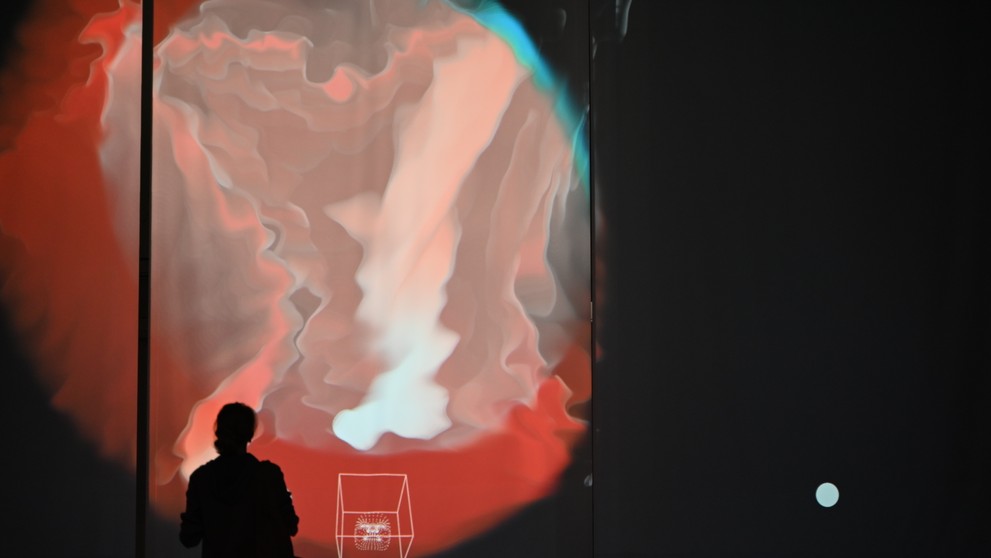 „Autor vytvoril niekoľko digitálnych scén, ktoré interagujú s pohybom návštevníka, jeho gestami a mimikou. Je to technologicky responzívna inštalácia, kde je divák nevyhnutnou súčasťou. Dokáže v nej zosobniť svoju náladu, ktorá sa zobrazí v priestore,“ vysvetľuje Pacáková.
