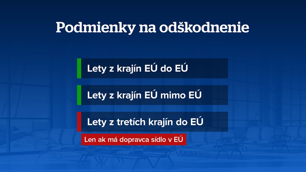 Nárok na odškodné vám vzniká v troch prípadoch – ak váš let mešká, ak bol zrušený alebo v prípade takzvaného overbookingu, a teda keď aerolinka predá viac leteniek, ako je v lietadle miest.