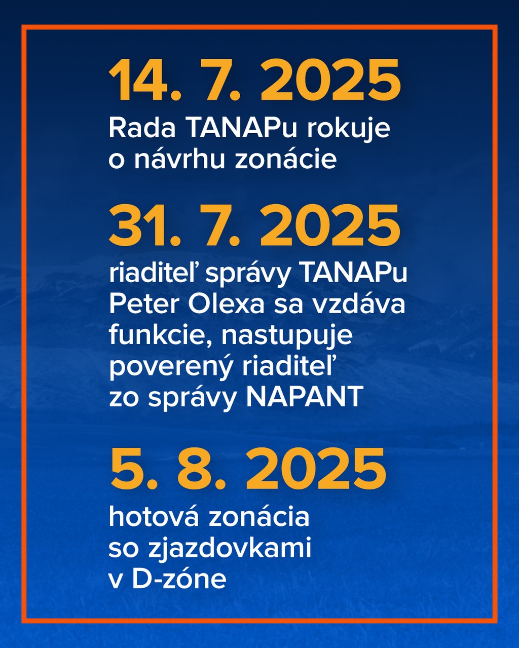 Rezort pod vedením nominantov Slovenskej národnej strany (SNS) triumfálne oznamuje, že zonácie sú podané. TANAP spĺňa dokonca dôležitú požiadavku - najprísnejšie chránená zóna, to znamená, že zóna bude tvoriť viac ako 50 percent.