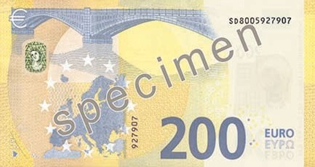 Po bankovkách v hodnote päť, desať, dvadsať a päťdesiat eur sú 100-eurové a 200-eurové bankovky poslednými dvomi nominálnymi hodnotami v rámci série Európa. Po ich vydaní tak bude séria kompletná.