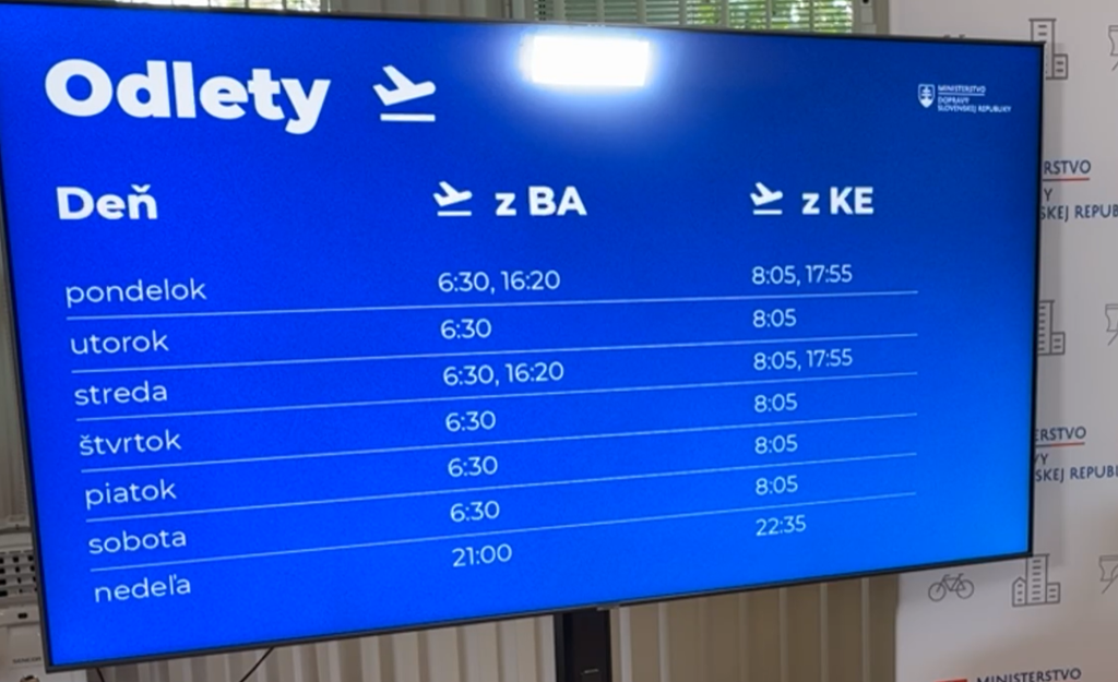 „Lieta sa každý jeden deň v týždni, v pondelok a piatok sa bude lietať dvakrát. Počas pracovných dní a v sobotu sa bude lietať o 6.30 h z Bratislavy, o 8.05 h z Košíc. V pondelok a piatok to bude aj o 16.20 h z Bratislavy a o 17.55 h z Košíc. V nedeľu sa odlieta vo večerných hodinách, a to o 21.00 h z Bratislavy a o 22.35 h z Košíc,“ priblížil Ráž.