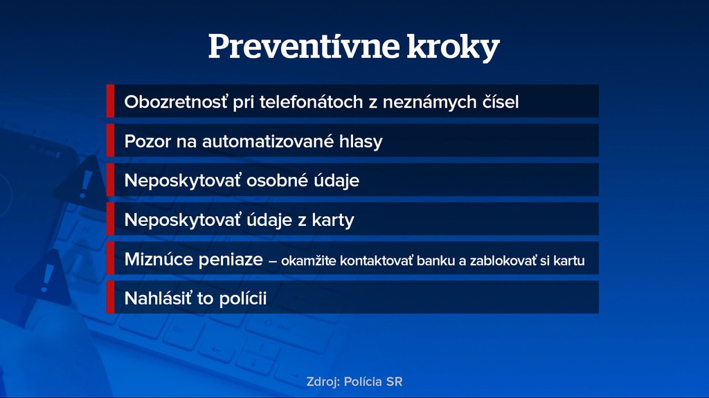 Ako teda nenaletieť podvodníkom? Polícia odporúča nezdvíhať neznáme čísla, nikomu neposielať osobné údaje ani údaje z karty. Keď už peniaze začnú miznúť – okamžite volať do banky, zablokovať kartu. A okamžite kontaktovať políciu.