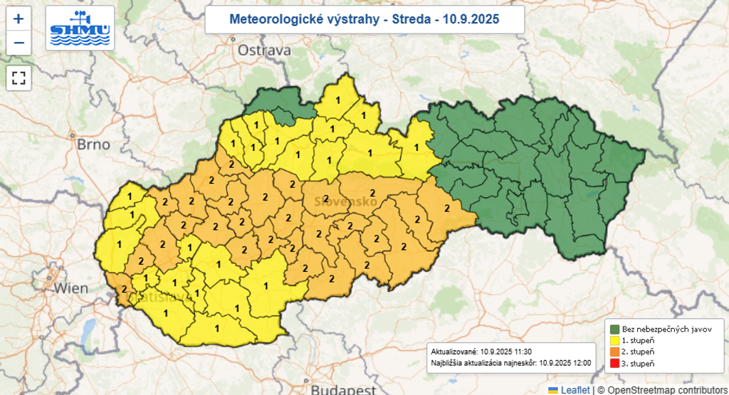 V týchto oblastiach môže lokálne spadnúť viac než 50 milimetrov zrážok, ojedinele aj vyše 70 milimetrov, čo môže spôsobiť problémy.
