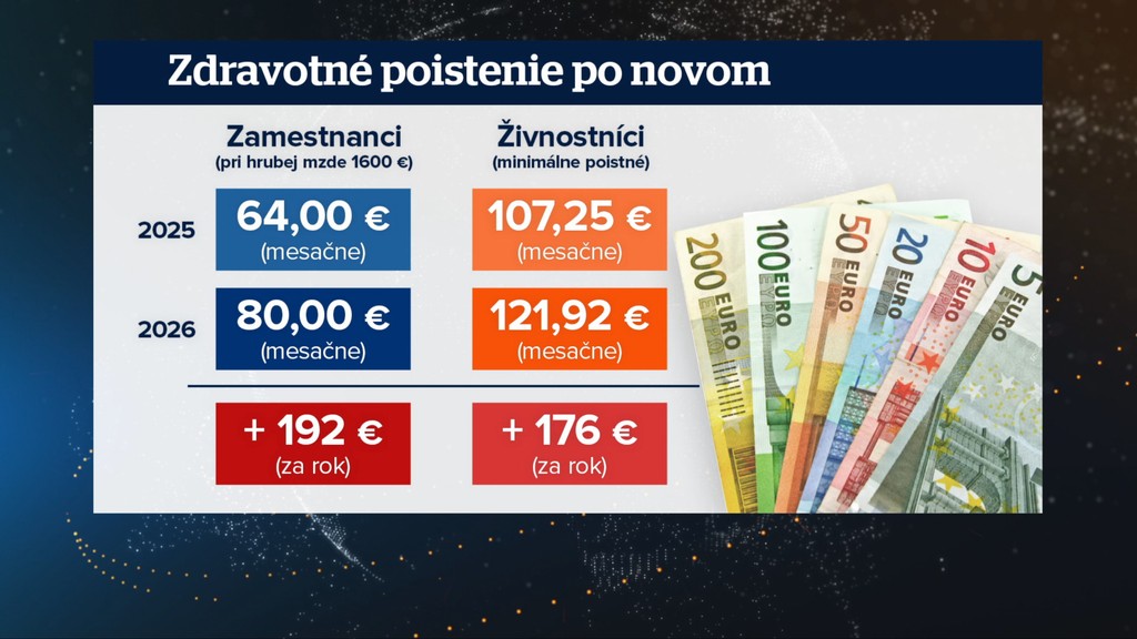 Zamestnanec s priemernou mzdou v hrubom 1600 eur prispeje ročne takmer 200 eurami navyše. Živnostníkom narastie minimálne poistné na takmer 122 eur. Štátna kasa od nich získa za rok navyše 180 eur.