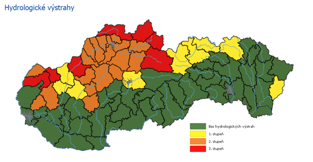 Prvý stupeň nebezpečenstva vyhlásili v okresoch Nové Mesto n. Váhom, Topoľčany, Piešťany, Banská Bystrica, Stará Ľubovňa, Bardejov, Kežmarok, Poprad a Sobrance.