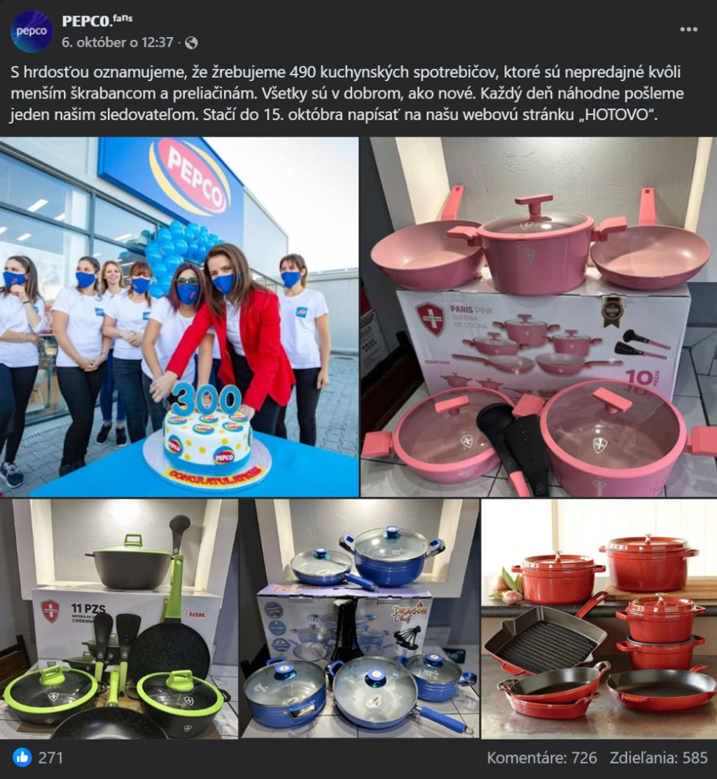 Na sociálnej sieti Facebook sa objavila stránka, ktorá sa vydáva za obchodný reťazec Pepco. Upozornil na to portál Živé.sk.