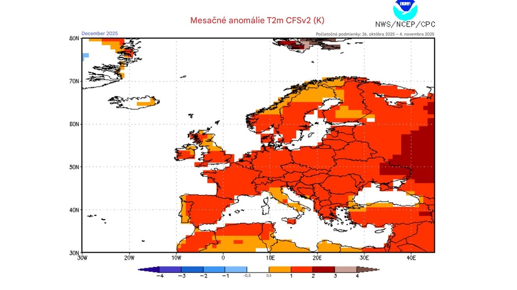 Európske centrum pre strednodobé predpovede počasia (ECMWF) aj americký model CFSv2 E3 Národnej meteorologickej služby uvádzajú, že teploty v decembri by mali byť na Slovensku o 1 až 2 °C vyššie ako dlhodobá norma. Lepšie to však nevyzerá ani v januári, keď teploty môžu byť vyššie až do 2 °C od dlhodobej normy.