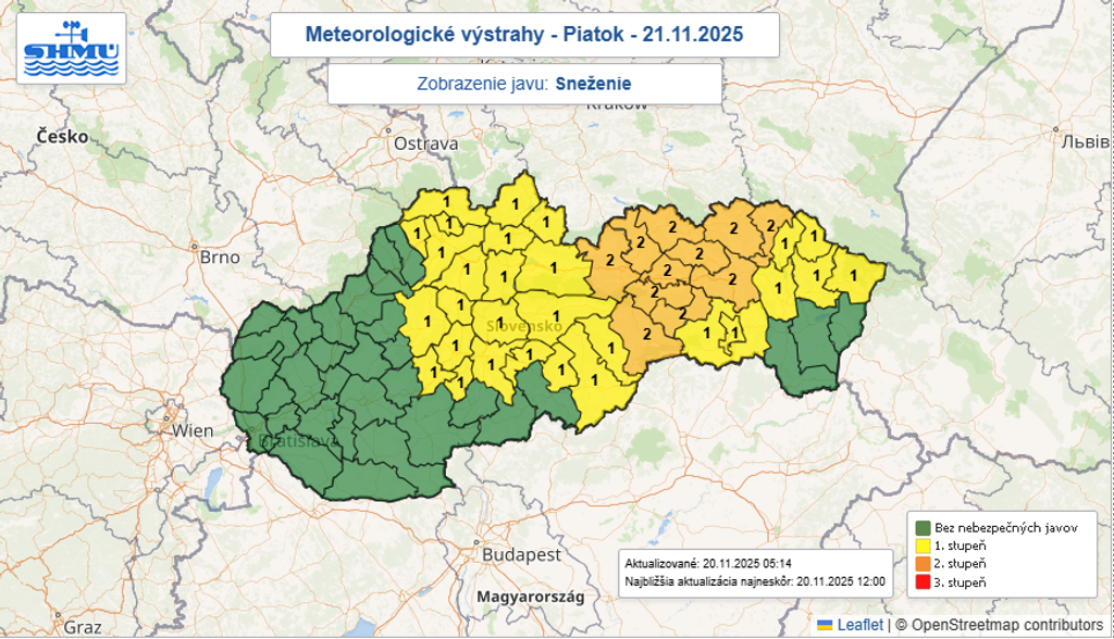 „V najbližších hodinách a dňoch sa črtá veľmi zaujímavá synoptická situácia, ktorá do našej oblasti prinesie zásadnú zmenu v počasí. Väčšina územia sa postupne dočká prvých snehových vločiek, v niektorých oblastiach sa však môže vyskytnúť prvá tohtosezónna snehová kalamita,“ uviedli meteorológovia.