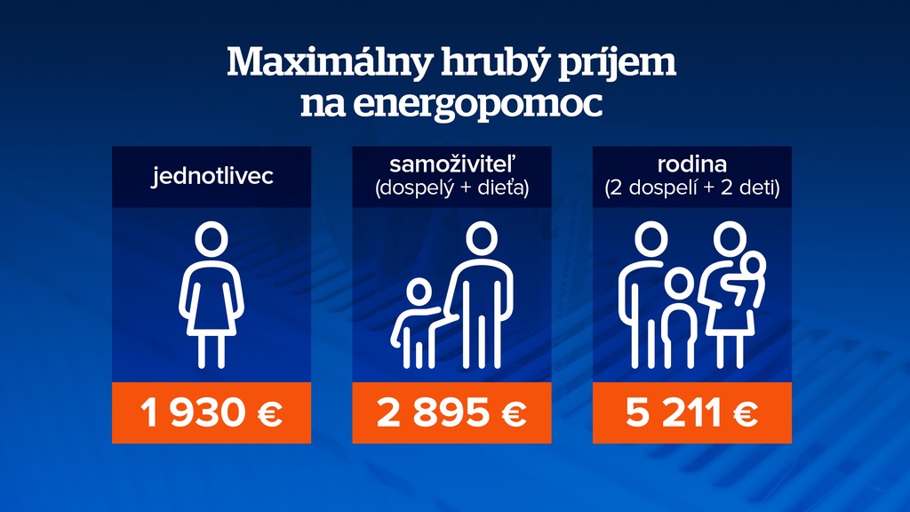 Maximálny možný zárobok, ktorý môžete v domácnosti dosiahnuť, aby pre vás ceny energií zostali zmrazené, je pri jednorodičovi 2895 eur mesačne. Bežná štvorčlenná rodina nesmie mať spoločný príjem živiteľov vyšší ako 5211 eur.