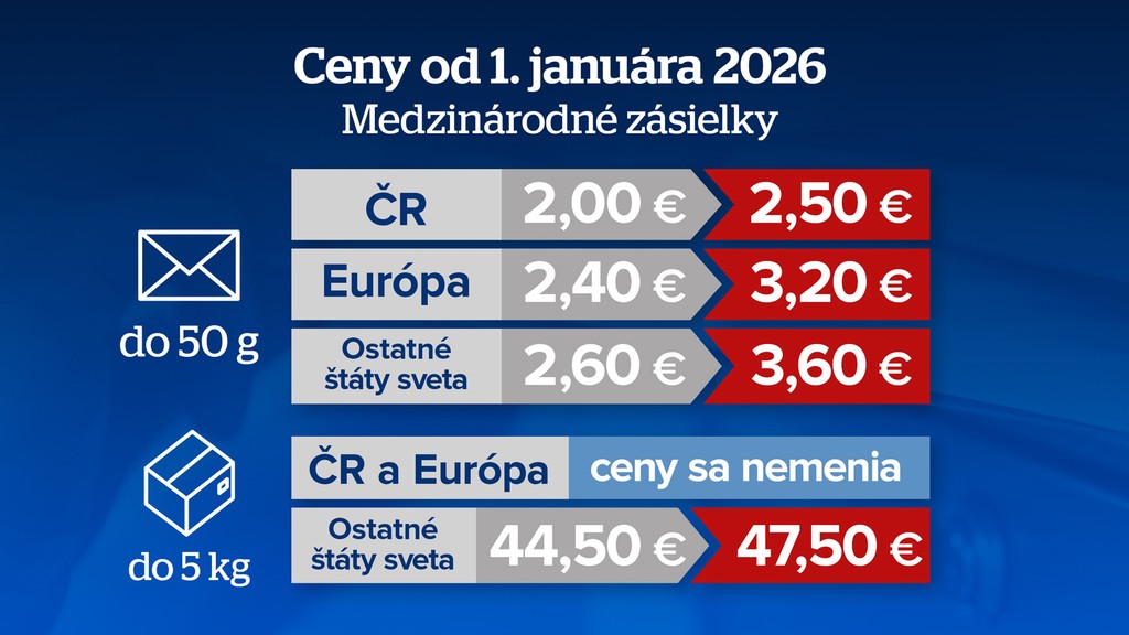 Ceny o niečo výraznejšie porastú pri medzinárodných listových zásielkach. Naopak, za balíky v rámci Európy sa od nového roka cenníky nebudú prepisovať. Ak však budete posielať balík mimo starý kontinent, zaplatíte približne o sedem percent viac.