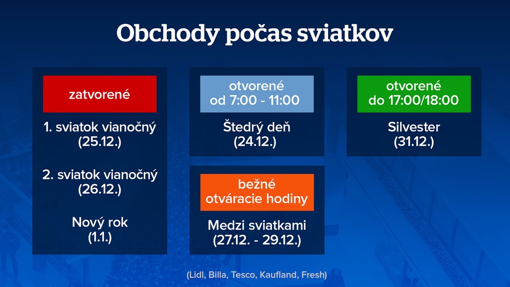 Reťazce to tak robia už roky, aby zamestnanci mali čas na rodinné sviatky. Obchody znova otvoria v sobotu 27. decembra.
